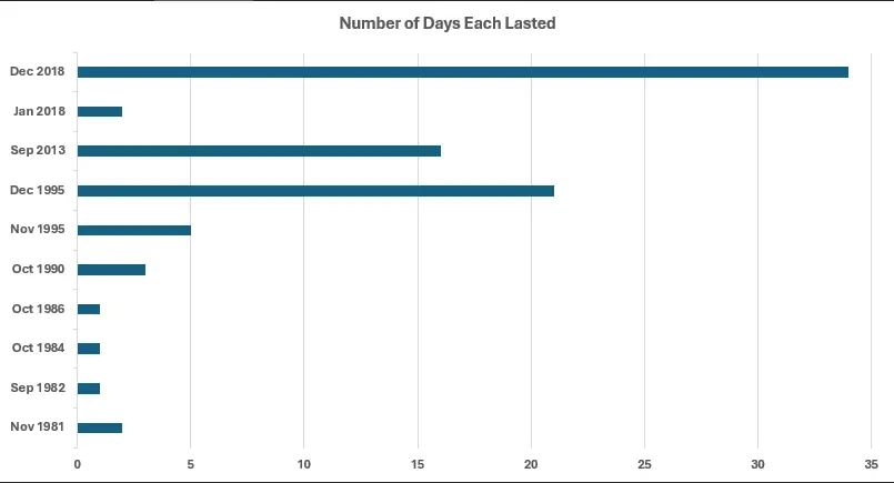 Government shutdowns aren’t new. Since the 1980s, there have been 10 previous shutdowns. Some lasted just a day or two, while the longest one stretched to 34 days in 2018–2019 (Brookings).